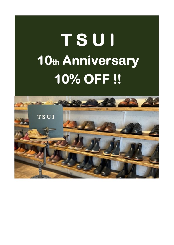 いろいろ考えましたが、日頃の感謝の意を込めまして、周年月の4月に靴をご注文いただいた場合、靴の基本代金を10%offさせていただきます。
